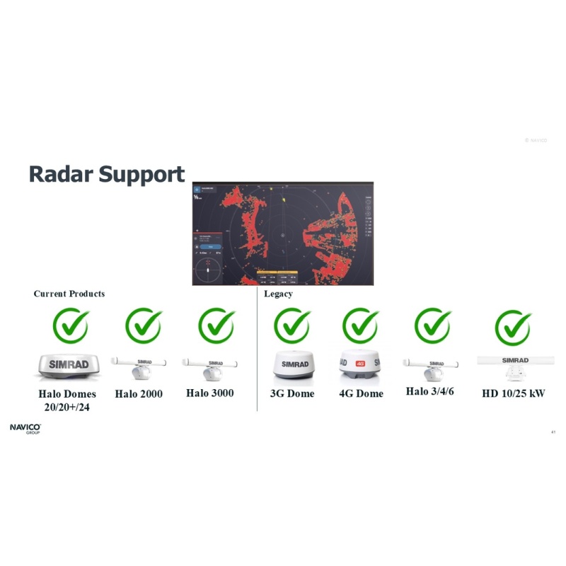 NSO® 4-24. NEON™ OS, 24-inch Glass-bridge multi-function display. Qualcomm® 8-core processor. Full HD touchscreen. Gigabit Ethernet, WIFI, Video In and Out. Worldwide Base map. (C-MAP® DISCOVER™ X chart or REVEAL™ X chart required for navigation).